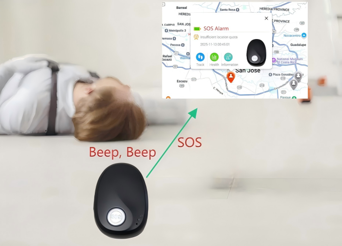 4. Man down alarm. If the lone worker falls down, the GPS tracker will send alarm to the platform/preset phone number.
